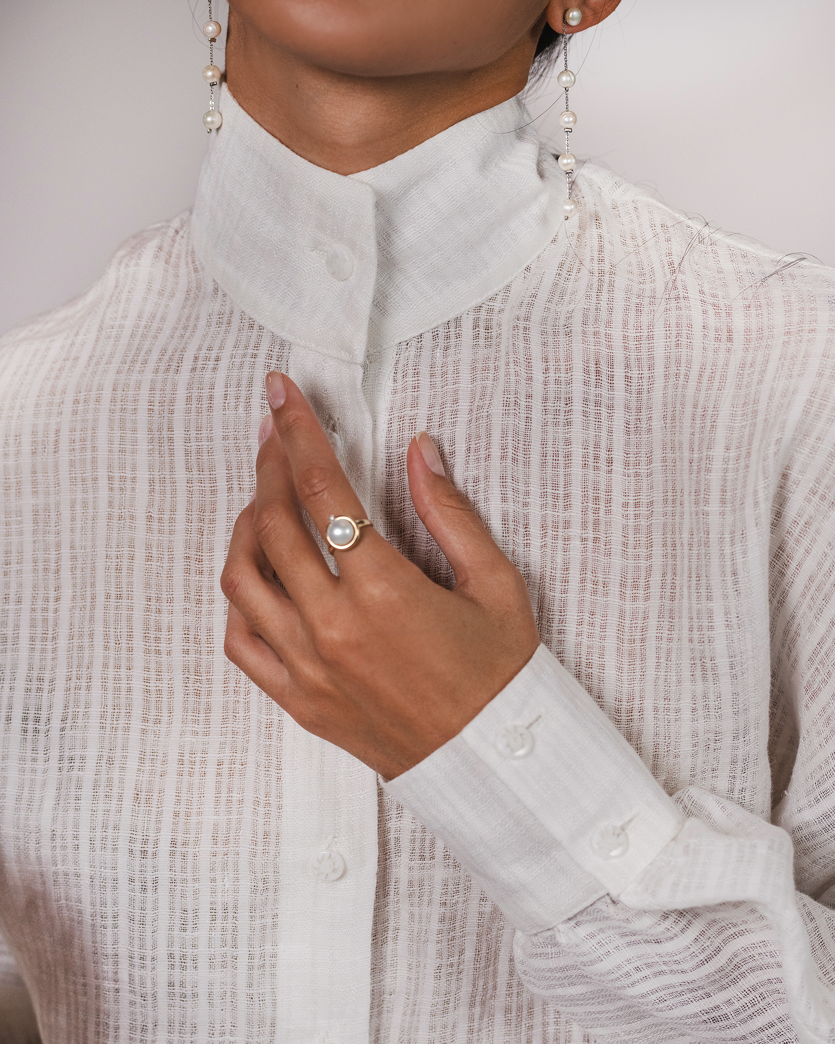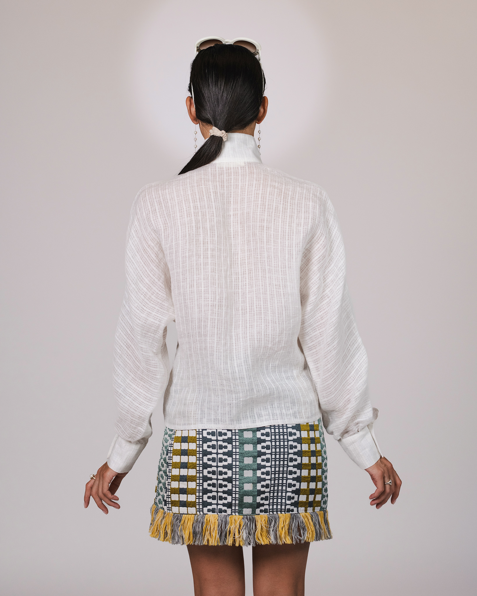 Shirt crafted from lightweight linen, a structured fabric that follows movement and reveals the subtle sheen of natural fibers.