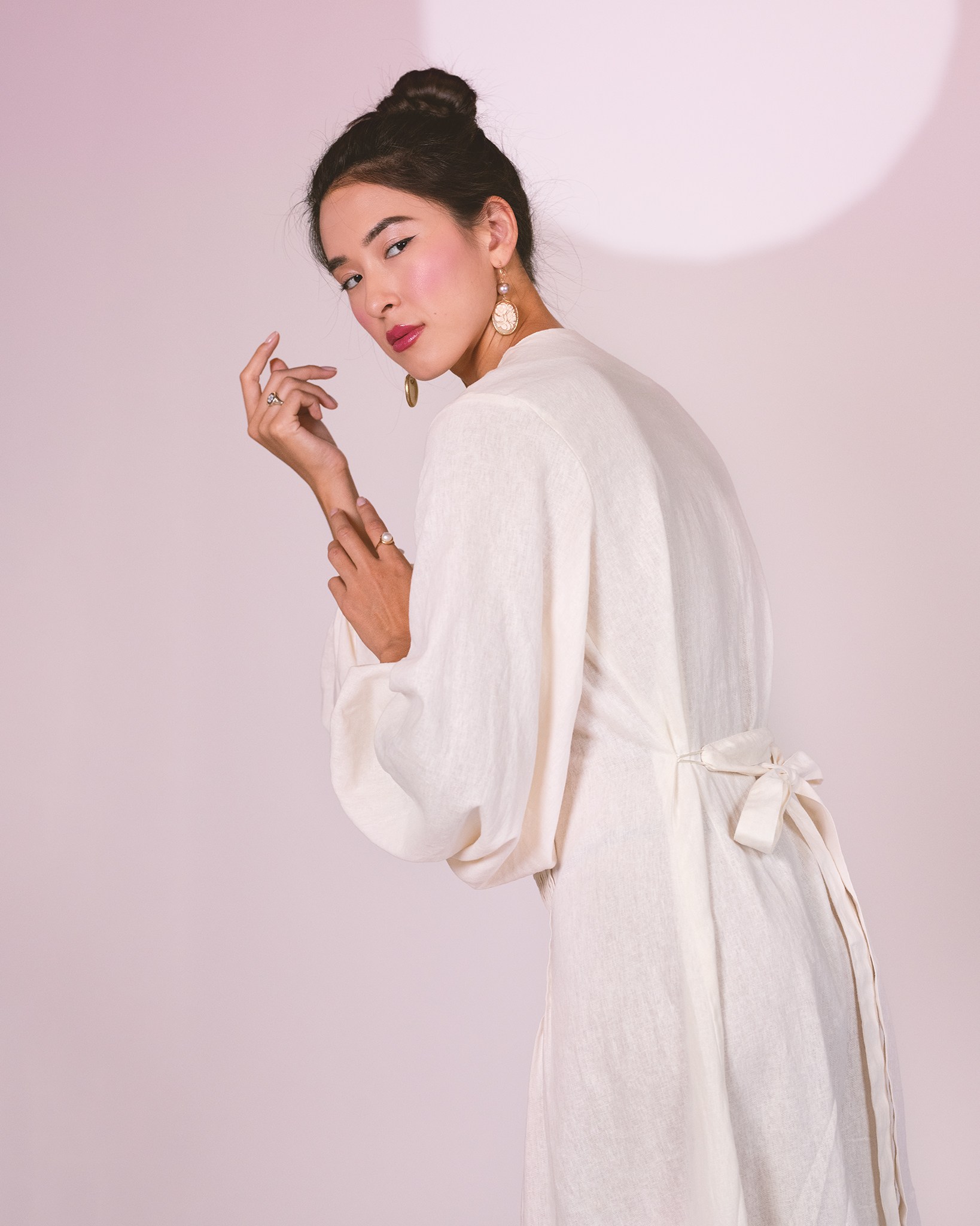 A midi-length dress inspired by the kimono.