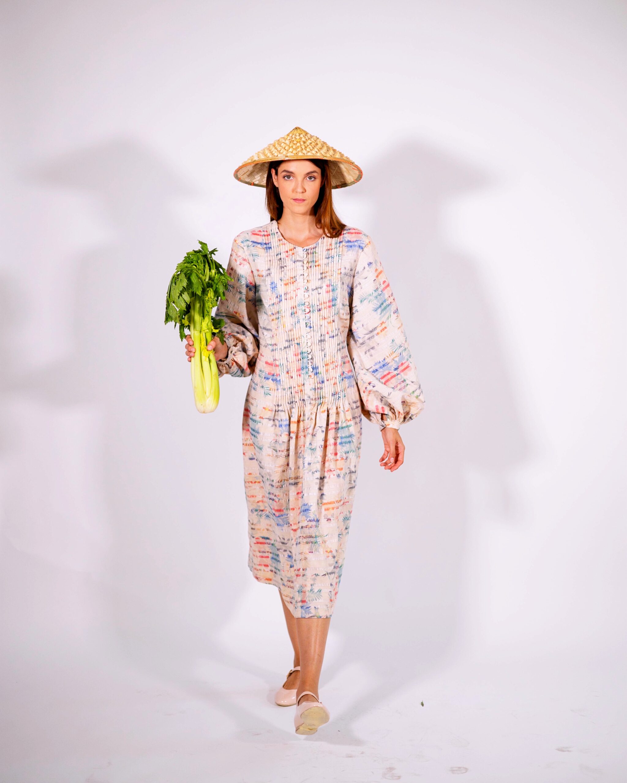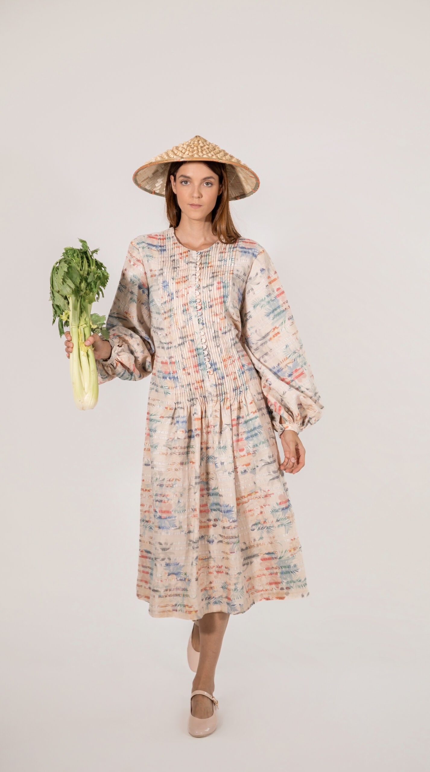 Button-fastening (or Button-up) to the waist, with accentuated sleeves.
