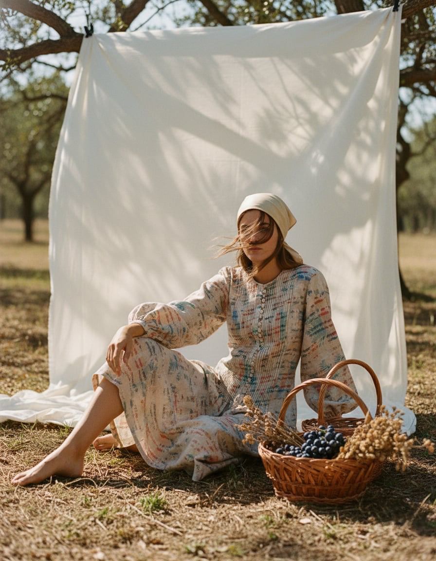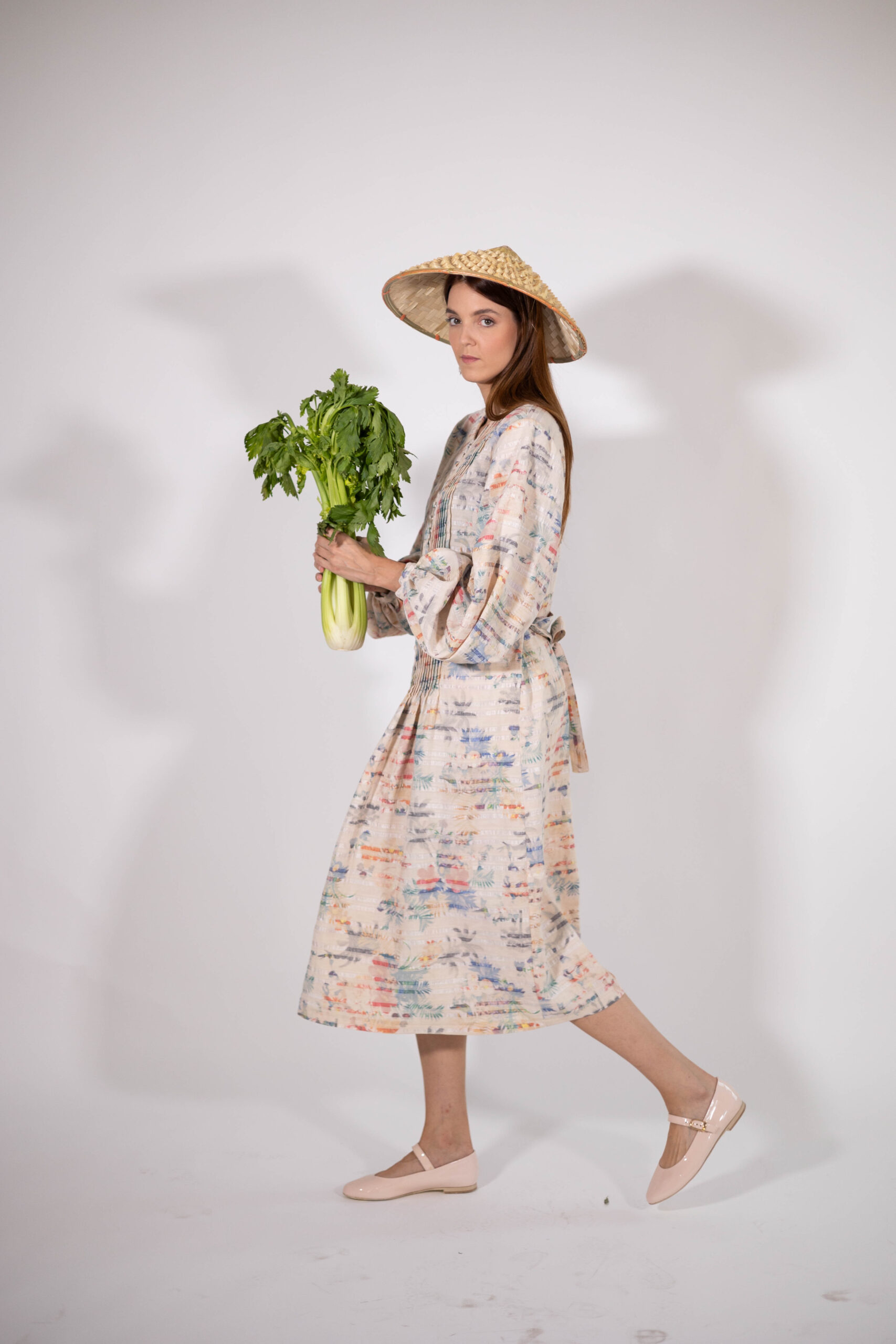 A midi-length dress with a slightly kimono-style cut.