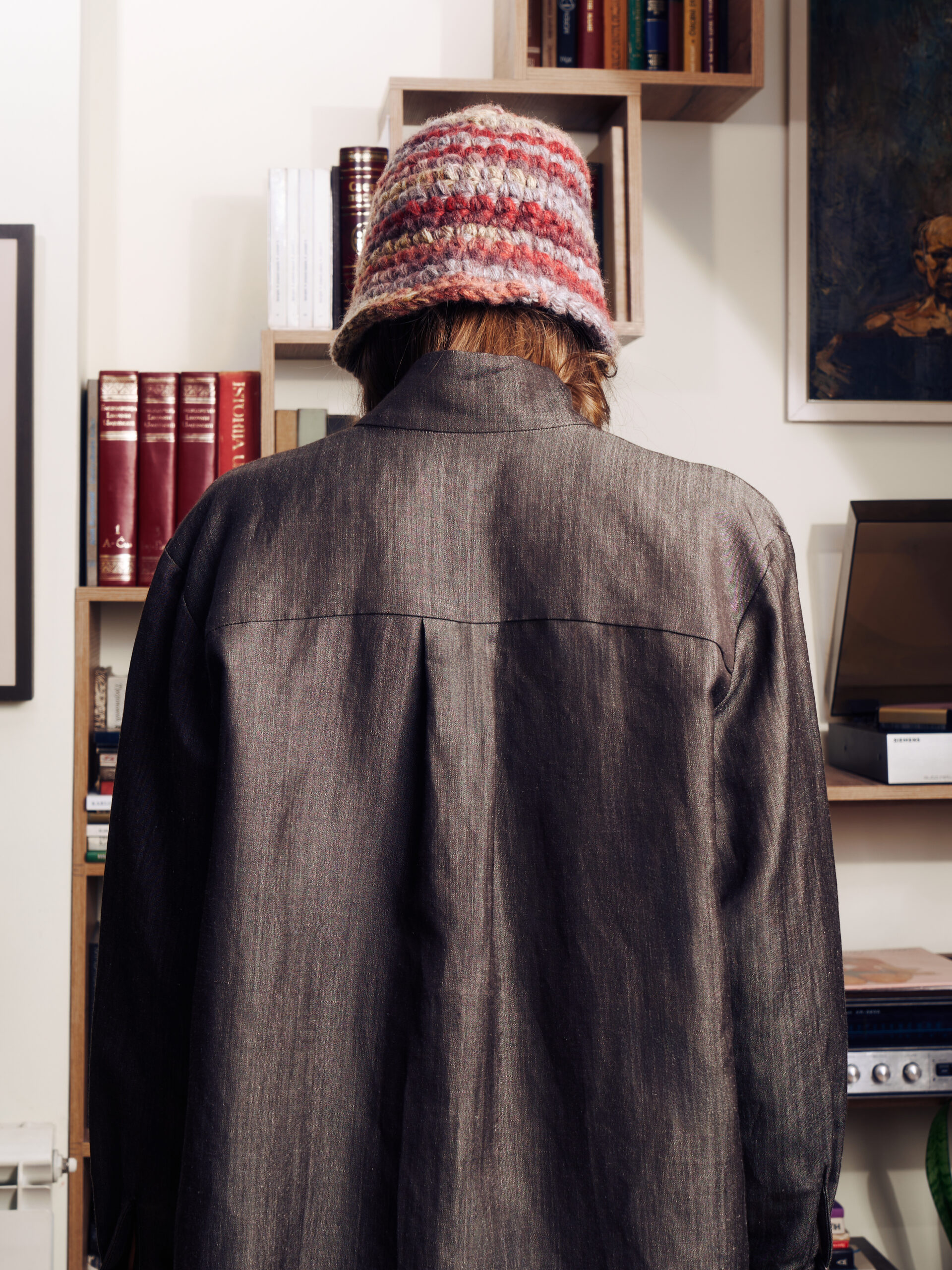 Made from structured cold-pressed wool paired with ultra-soft silk, the Keito shirt balances texture and comfort. Designed with a high collar and an oversized silhouette that falls slightly longer at the back, it is the ultimate staple—effortlessly taking you from day to night, and season to season.