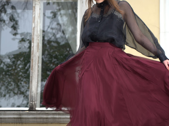 The Muyoku Skirt flows with a fluid silhouette and a refined, sophisticated touch.